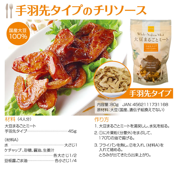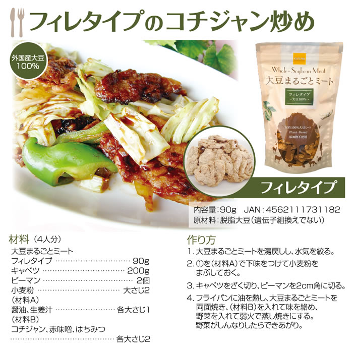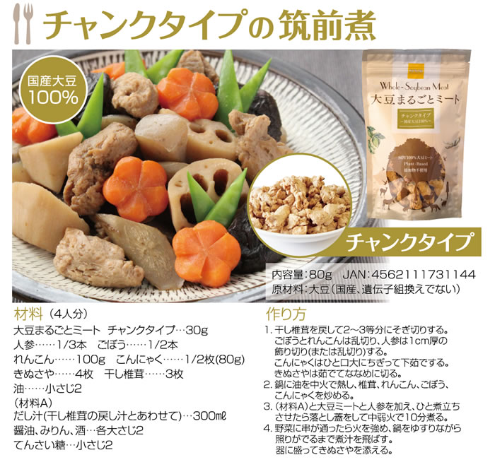 栄養価の高い薄皮の部分も含め、大豆をまるごと使った『植物性のお肉』です。