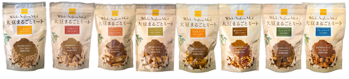 We offer 7types of Daizu marugoto meat in various shapes, such as minced, block, sliced and so on. Chose any one of them as you like and enjoy cooking.