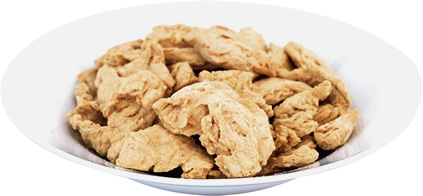 大豆をギュギュ!っと搾って栄養を凝縮!油分をカットでとってもヘルシー。お湯で戻すとお肉のような食感で、どんなお料理とも相性バツグン! 低脂肪で、良質なたんぱく質と食物繊維を少量で摂取できます。
