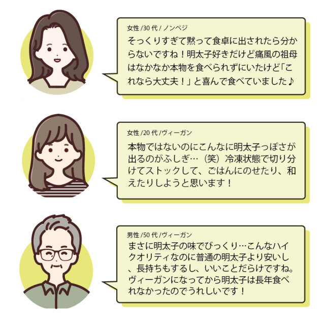 ベジタリアンの人、そうでない人が試食を重ね、本物と遜色ない明太子ペーストを再現しました。
