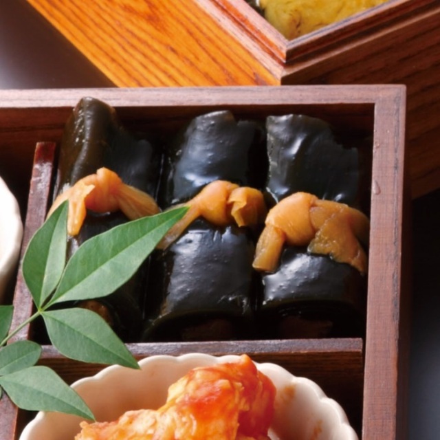 昆布巻(昆布(北海道)、ゆば、かんぴょう)、砂糖、しょうゆ、還元水飴、発酵調味液/調味料(アミノ酸等)、(一部に小麦・大豆を含む)
