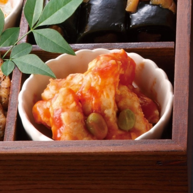 エビ状加工食品(食塩、その他)(国内製造)、トマトジュース(トマト、食塩)、トマトブレンドソース(トマト、砂糖、醸造酢、水飴、その他)、穀物酢、てんさい糖、しょうゆ、馬鈴しょでん粉、しょうが汁、むき枝豆、豆板醤、ごま油、中華だしの素、香辛料/ゲル化剤(カードラン、グルコマンナン)、加工でん粉、リン酸K、pH調整剤、調味料(アミノ酸等)、粉末セルロース、炭酸Ca、香料、パプリカ色素、トマト色素、甘味料(ソルビトール)、増粘剤(タマリンド)、(一部に小麦・ごま・大豆を含む)